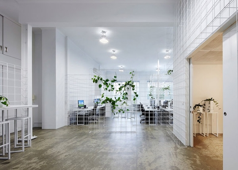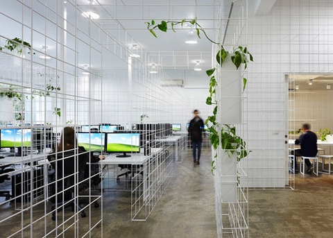 Văn phòng mới sử dụng những kết cấu khung sắt đan cố định với nhau và mô hình hóa theo từng không gian thông qua việc cài đặt các tùy chỉnh của lưới sắt. Không gian làm việc được tạo lập trên “ma trận” này mang lại một cảm giác vừa có sự phân chia nhưng lại vừa đảm bảo sự riêng tư của mỗi bàn làm việc hay từng bộ phận. Mỗi vị trí có thể được tùy chỉnh bởi người sử dụng với thiết kế đặc biệt của các khung sắt, có thể làm giá sách, treo các văn phòng phẩm hoặc đồ dùng cá nhân, đặc biệt là cây cối.